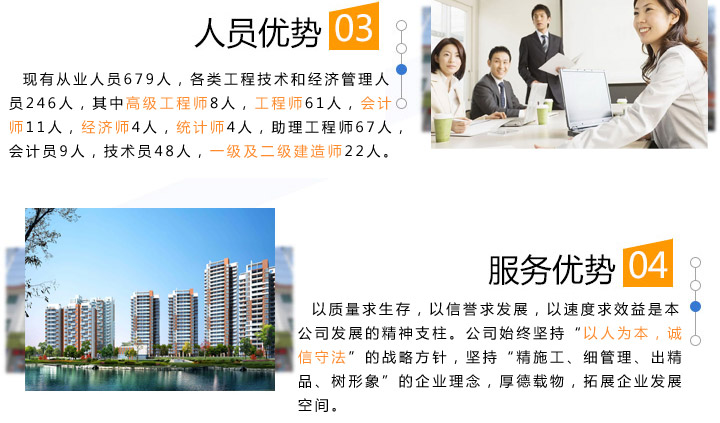 質(zhì)量求生存,以信譽求發(fā)展,以速度求效益是本公司發(fā)展的精神支柱。公司始終堅持“以人為本,誠信守法”的戰(zhàn)略方針,堅持“精施工、細(xì)管理、出精品、樹形象”的企業(yè)理念,厚德載物,拓展企業(yè)發(fā)展空間。 我們將繼續(xù)堅持“質(zhì)量第一、用戶第一、信譽第一”的宗旨,以最優(yōu)惠的價格,最優(yōu)質(zhì)的產(chǎn)品和最完善的服務(wù)來滿足廣大用戶的需求。依靠創(chuàng)新和優(yōu)良的品質(zhì),出一流產(chǎn)品,創(chuàng)一流效益,與您共創(chuàng)美好燦爛的明天! ...